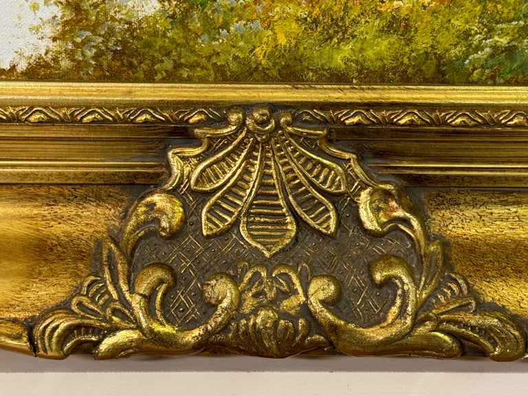 This artwork would be an elegant addition to any space, perfect for those who appreciate pastoral beauty and classic craftsmanship. Its balance of warmth, intricate detail, and romantic scenery offers a timeless quality that invites viewers to pause and enjoy a quiet moment in nature.