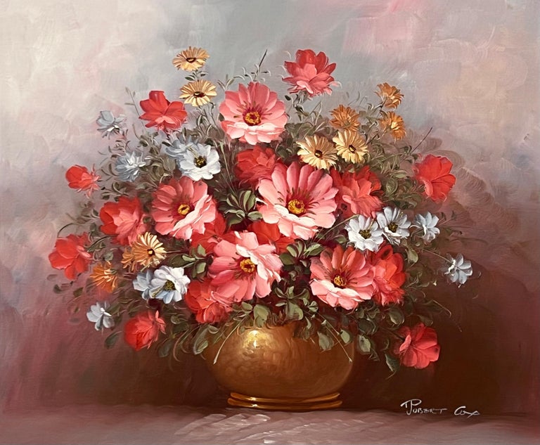 Robert Cox found much inspiration for his beautiful floral paintings in California and became one of the most prolific painters of the 1970’s and 1980’s. He used palette knife to create his stylised flowers and was awarded the Brown Hammerson Medal of Honour for services to art in 1986. His work is featured in museums, galleries and private collections across the world.
