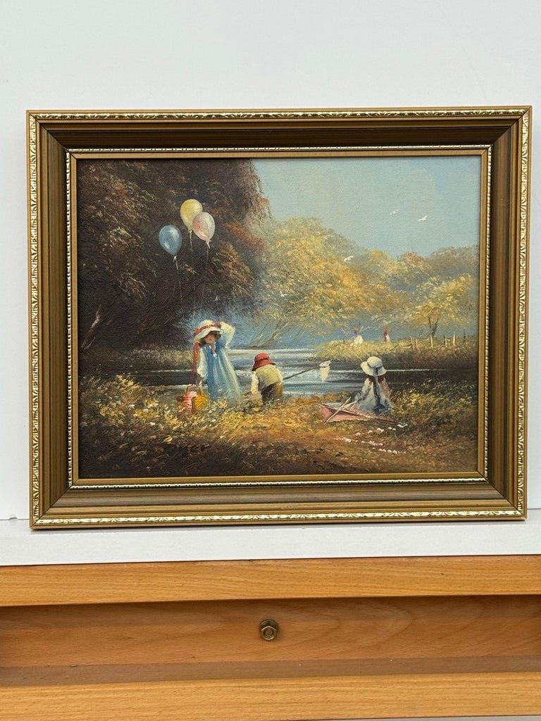 Oil Painting of Children Playing on Summers Day in the English Countryside